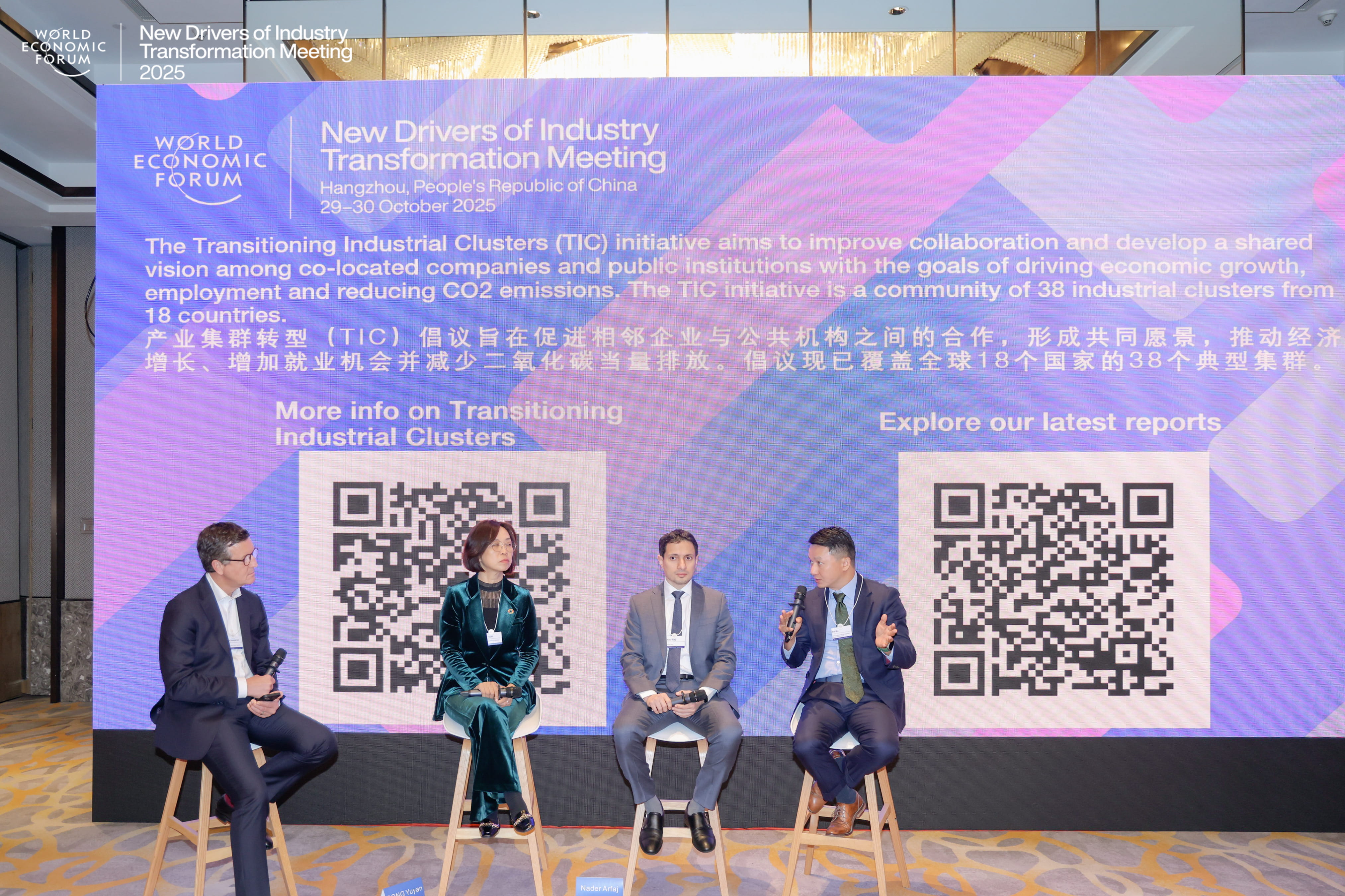 China Managing Director Nader Al Arfaj, joined the panelists for the “Industrial Parks: A Blueprint for Transformation” session at the World Economic Forum New Drivers of Industry Transformation meeting on October 29 in Hangzhou.